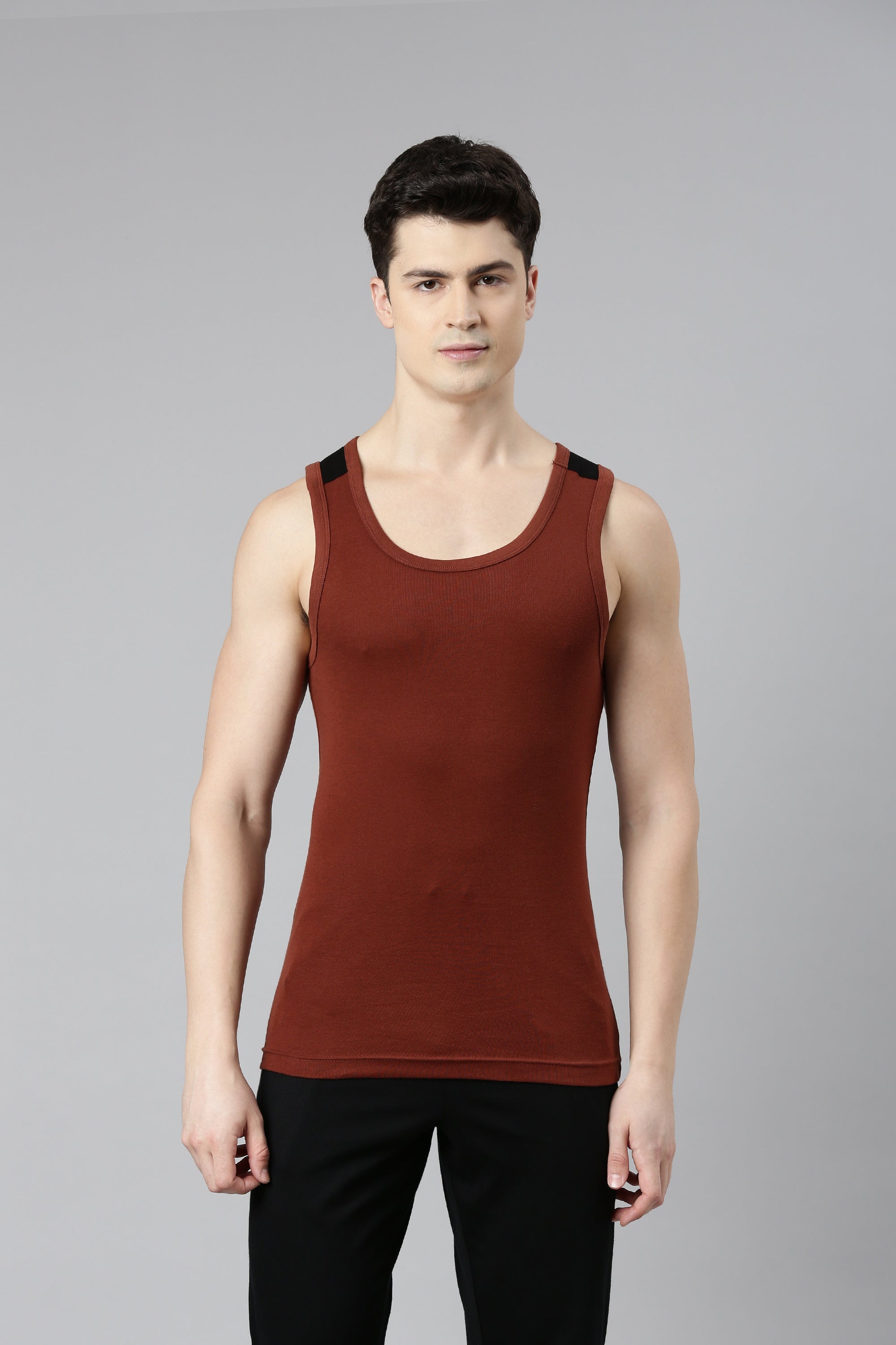 Stay stylish and comfortable all day with the FASO Men's Cotton Stretch Color Vest. Crafted from 100% super combed cotton stretch fabric, it ensures a soft touch against your skin and a perfect body-hugging fit. The double-reinforced shoulder straps provide enhanced durability and stay in place without slipping off.